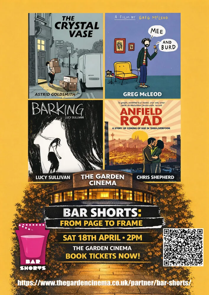 Art Filed Under:Bar Shorts returns to the Garden Cinema with an afternoon celebrating the artists who move fluidly between two worlds: the flicker of film and the stillness of the graphic novel page. From Frame to Page brings together some of the UK’s most inventive animation voices to explore how their storytelling evolves when the camera stops rolling and the pen takes over.
