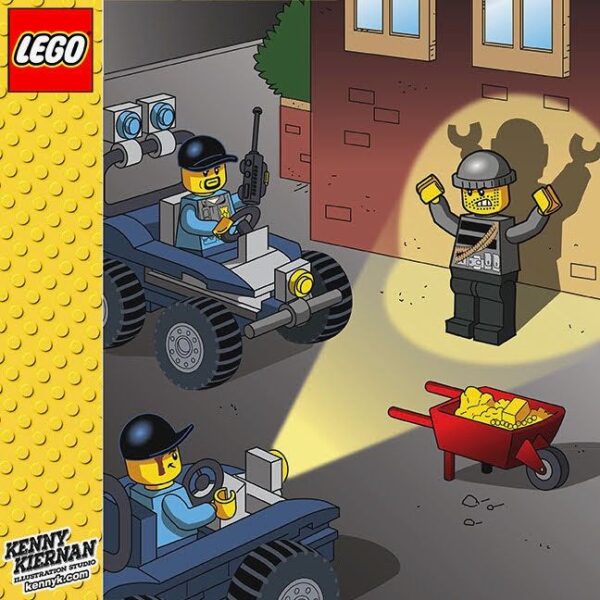 Art Filed Under:LEGO "Stop The Heist" graphic novel vector illustration interior page for Scholastic. Kenny Kiernan Illustration & Design Studio's clients include Hasbro, Funko, Mattel/Fisher-Price, Spin Master, Marvel, Disney, LEGO, Scholastic, and many more; visit my portfolio to see what its all about... lets collaborate on your next project!
